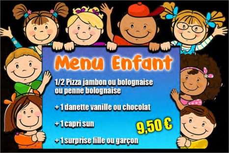 A la carte, plus de 50 pizzas, Pastas, Gratins et Festival de pâtes, Salades et nos Tiramisus en dessert. Menu enfant à 9,50€.